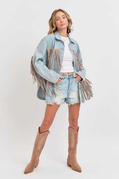 WESTERN VINTAGE FRINGE DENIM JACKET