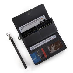 Made of PU leather ,this tri-fold wallet/wristlet has: