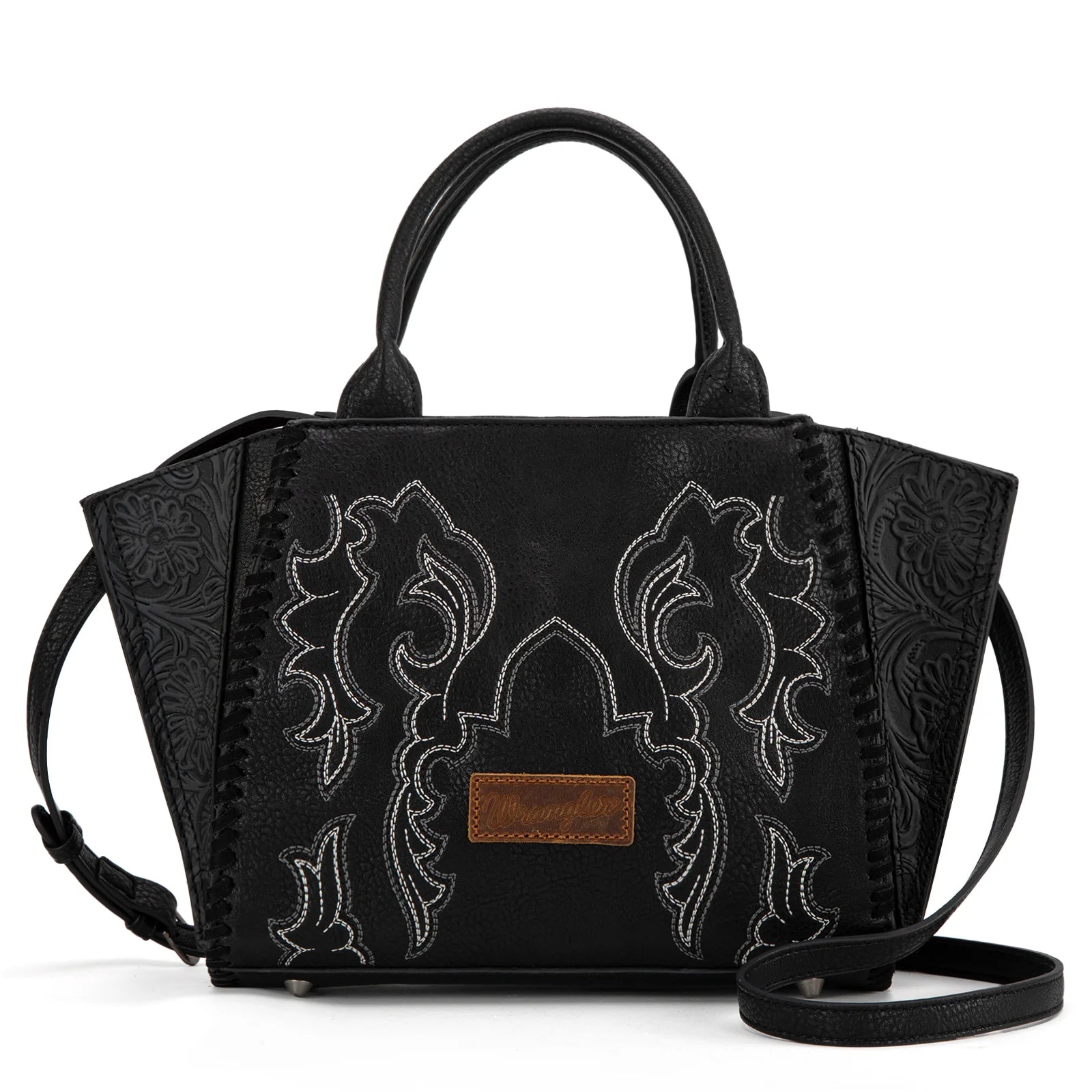 Wrangler Embroidered Trapezoid Tote/Crossbody in Black
