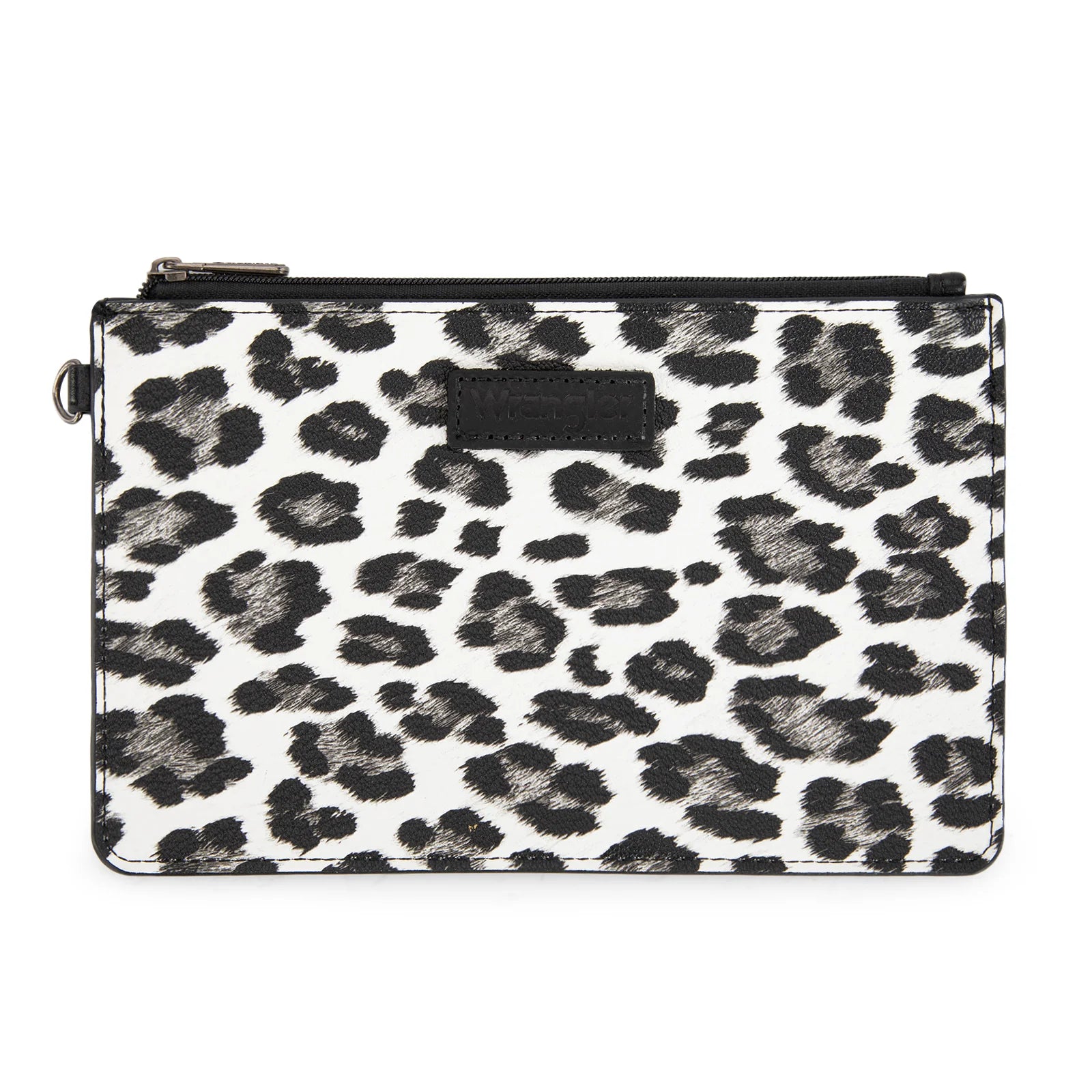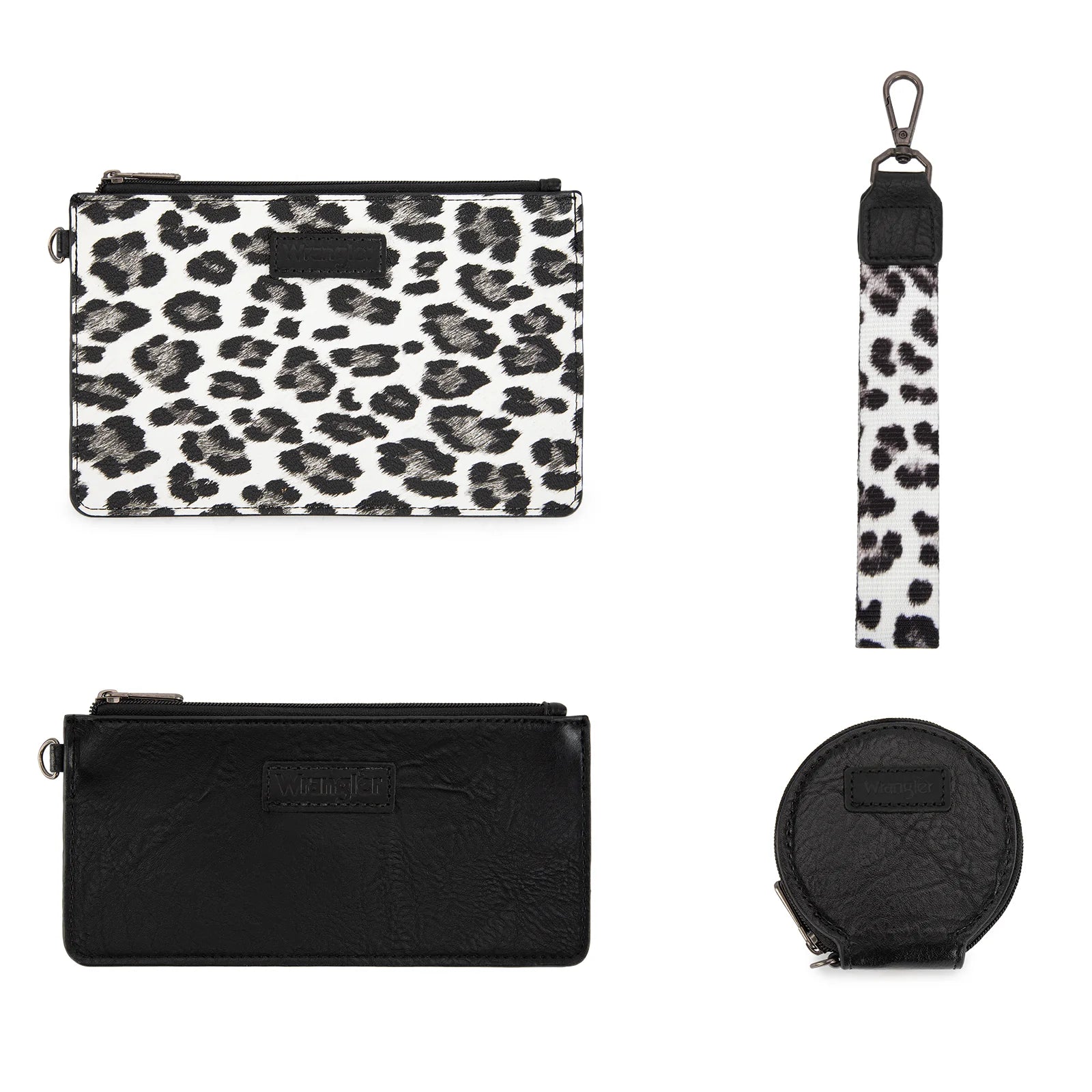 Wrangler Leopard Print Dual Pouch Wristlet with Zipper Round Case in Black